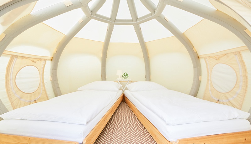 Kompaktes, aufblasbares Glamping- und Eventzelt für mobile Einsätze